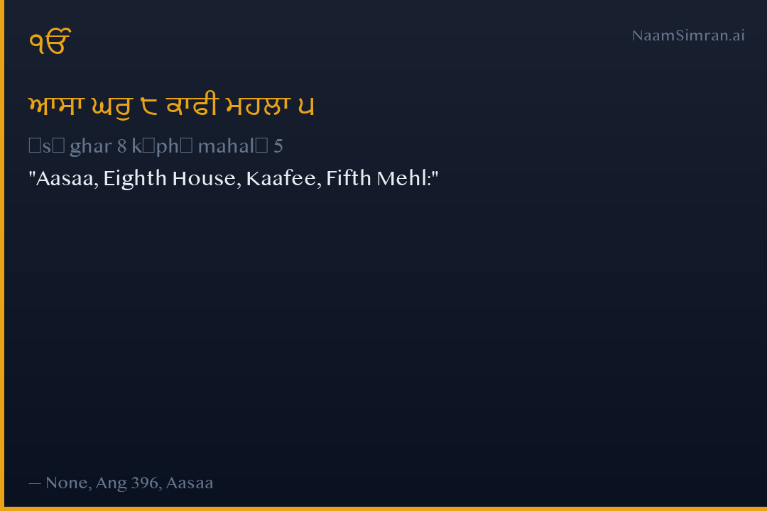 Aasaa, Eighth House, Kaafee, Fifth Mehl: