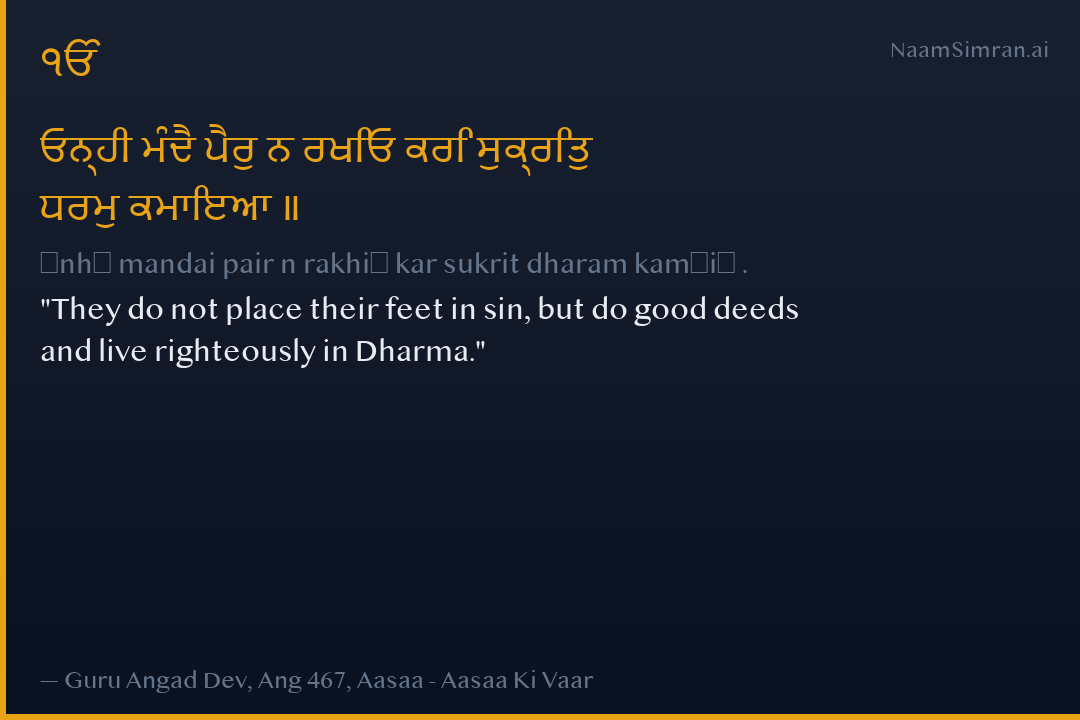 ਓਨ੍ਹੀ ਮੰਦੈ ਪੈਰੁ ਨ ਰਖਿਓ ਕਰਿ ਸੁਕ੍ਰਿਤੁ ਧਰਮੁ ਕਮਾਇਆ ॥
