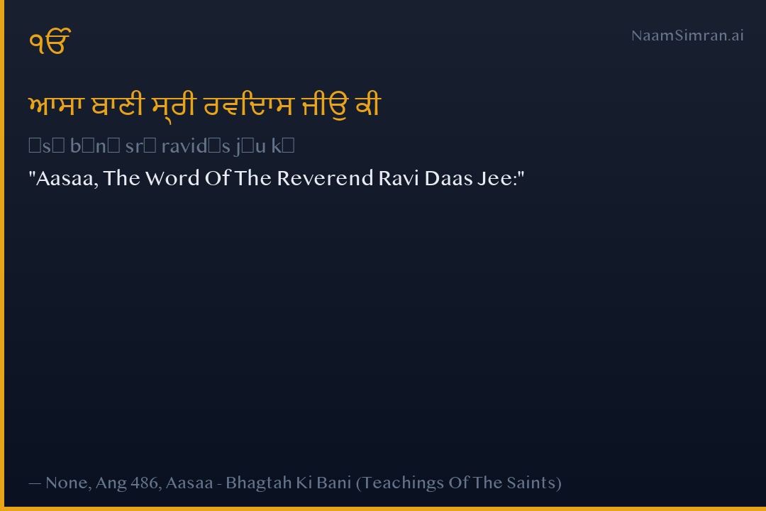 Aasaa, The Word Of The Reverend Ravi Daas Jee: