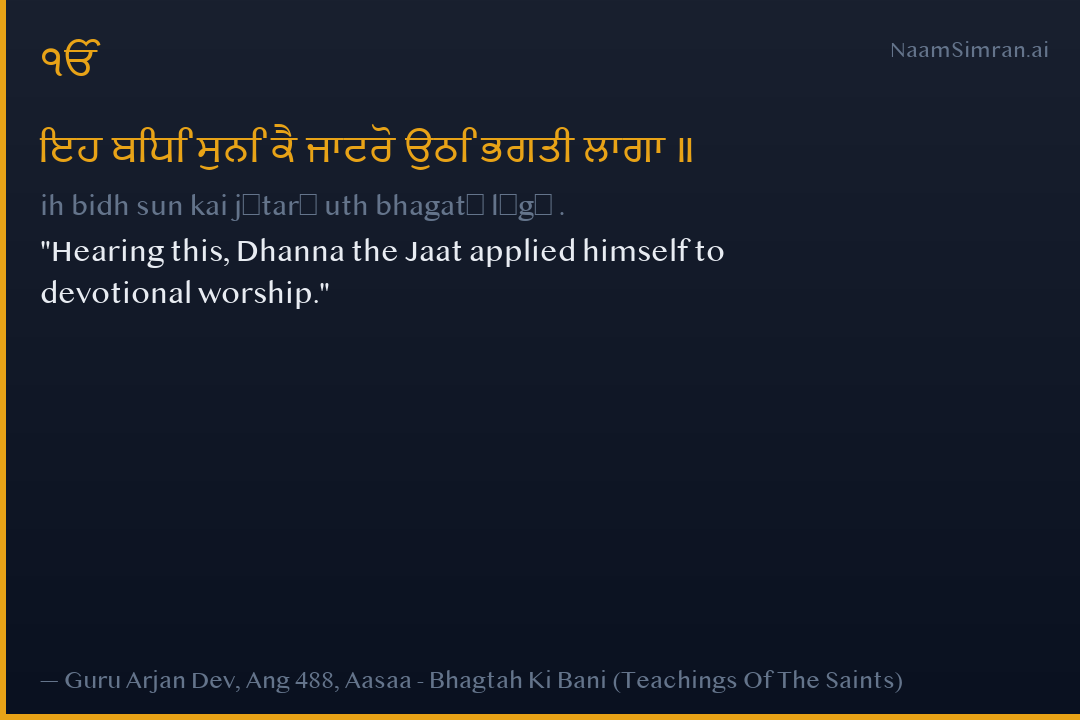 Hearing this, Dhanna the Jaat applied himself to devotional worship.
