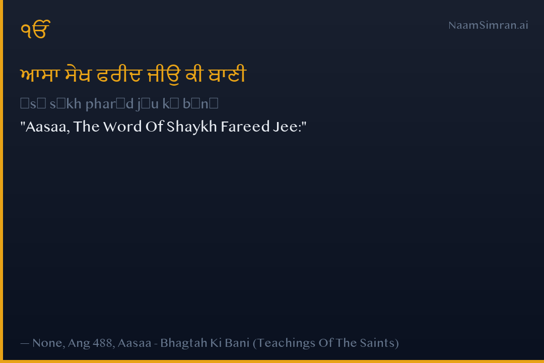 ਆਸਾ ਸੇਖ ਫਰੀਦ ਜੀਉ ਕੀ ਬਾਣੀ
