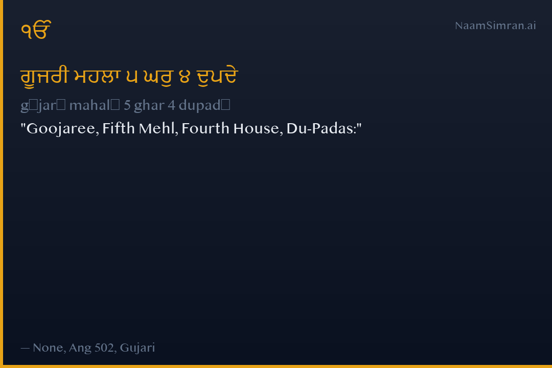 gūjarī mahalā 5 ghar 4 dupadē