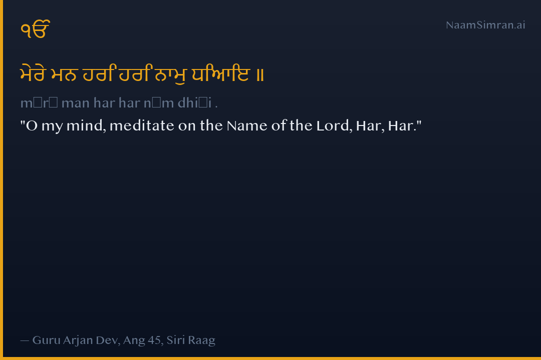O my mind, meditate on the Name of the Lord, Har, Har.