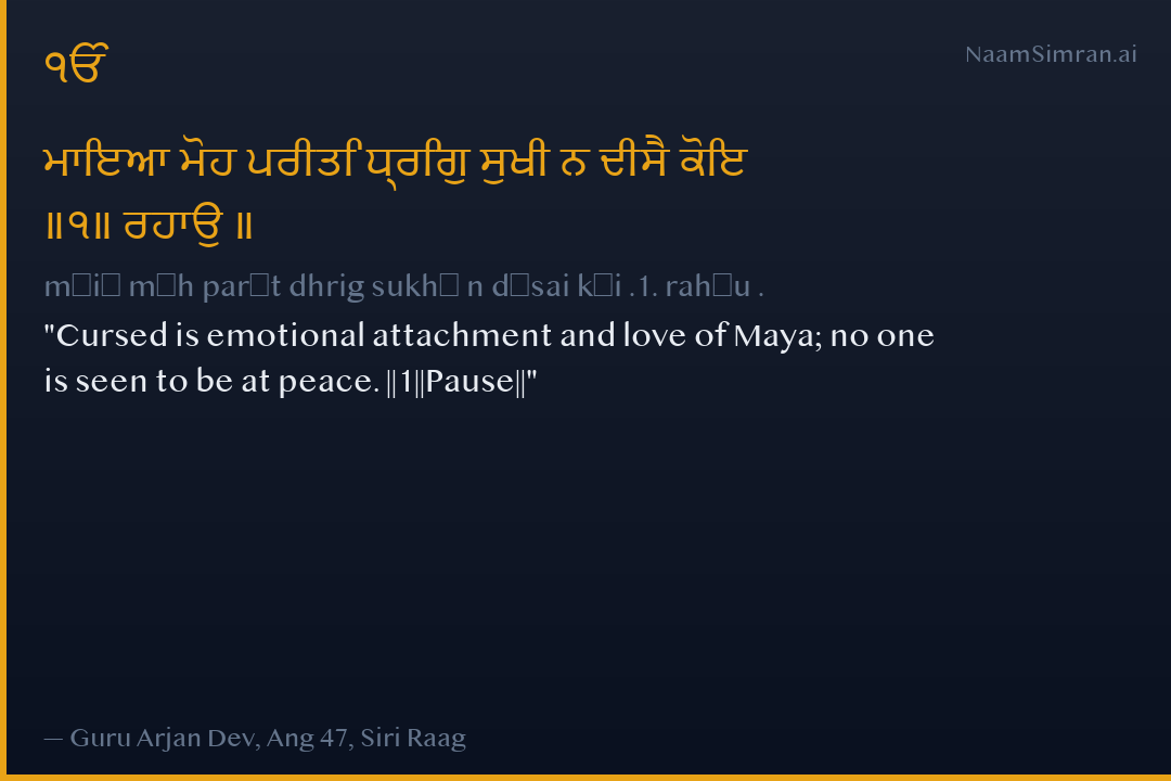 māiā mōh parīt dhrig sukhī n dīsai kōi .1. rahāu .
