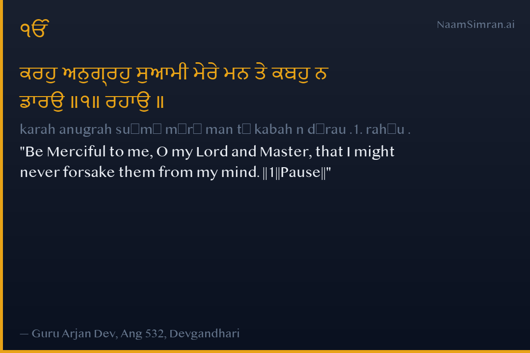ਕਰਹੁ ਅਨੁਗ੍ਰਹੁ ਸੁਆਮੀ ਮੇਰੇ ਮਨ ਤੇ ਕਬਹੁ ਨ ਡਾਰਉ ॥੧॥ ਰਹਾਉ ॥