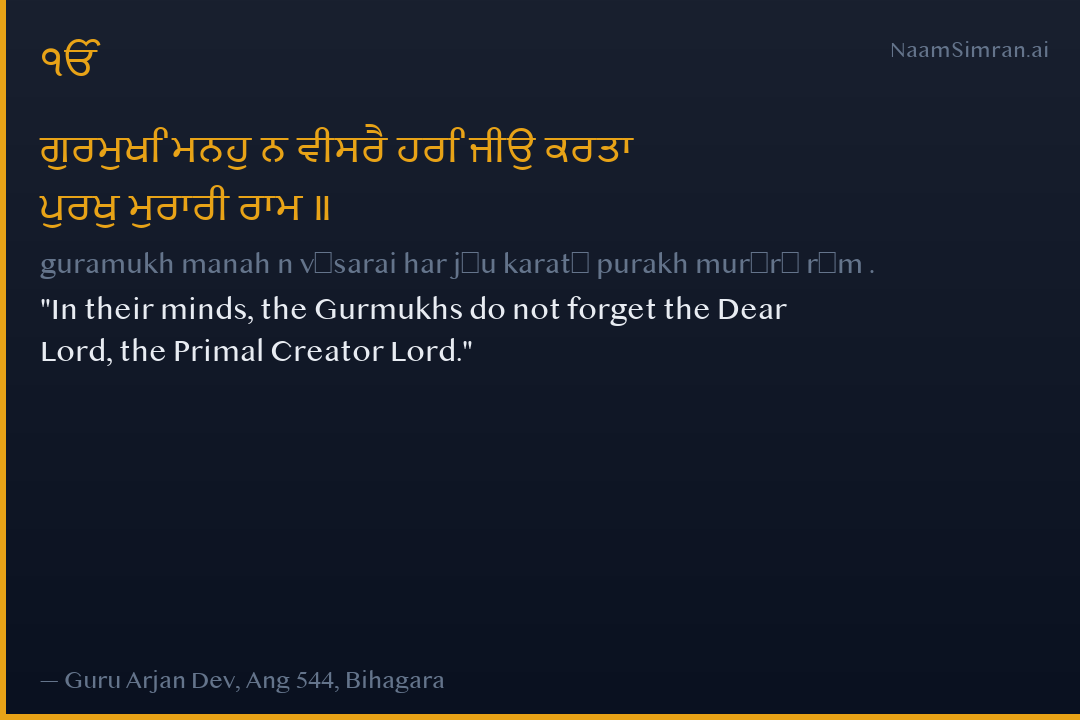 guramukh manah n vīsarai har jīu karatā purakh murārī rām .
