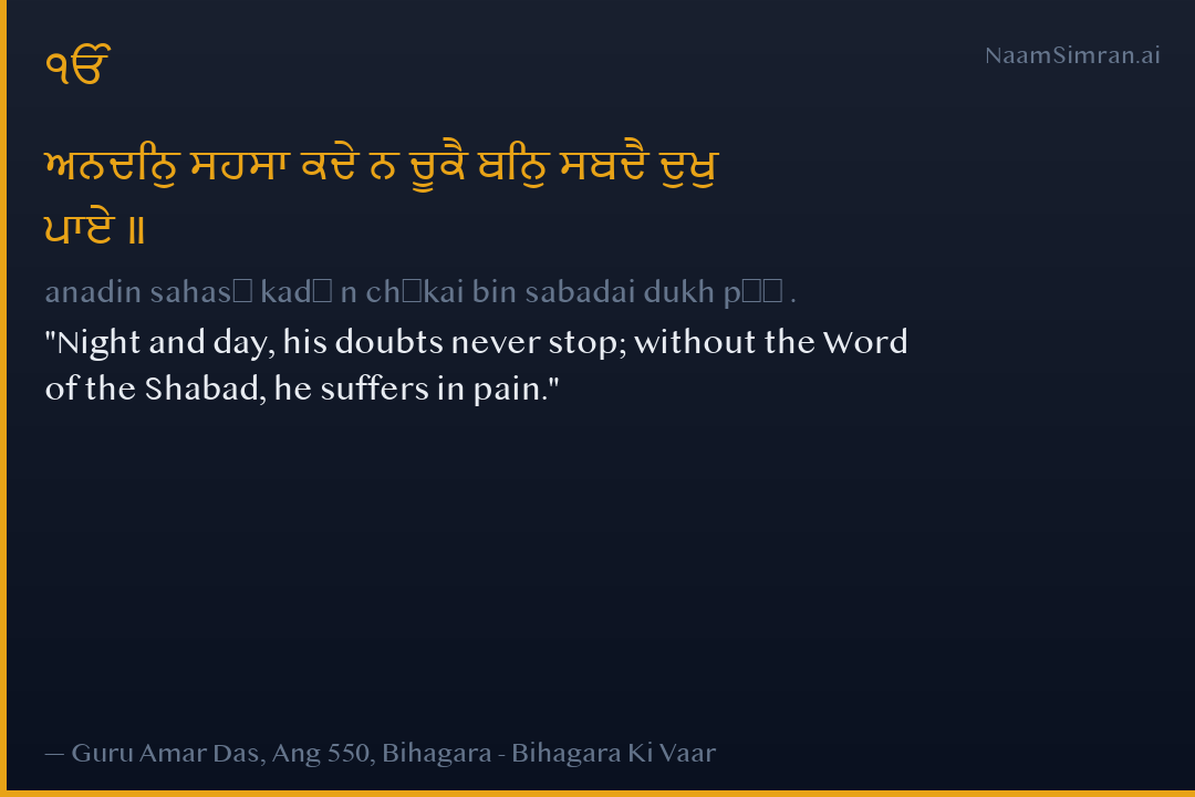 ਅਨਦਿਨੁ ਸਹਸਾ ਕਦੇ ਨ ਚੂਕੈ ਬਿਨੁ ਸਬਦੈ ਦੁਖੁ ਪਾਏ ॥