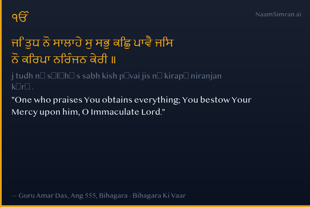 ਜਿ ਤੁਧ ਨੋ ਸਾਲਾਹੇ ਸੁ ਸਭੁ ਕਿਛੁ ਪਾਵੈ ਜਿਸ ਨੋ ਕਿਰਪਾ ਨਿਰੰਜਨ ਕੇਰੀ ॥