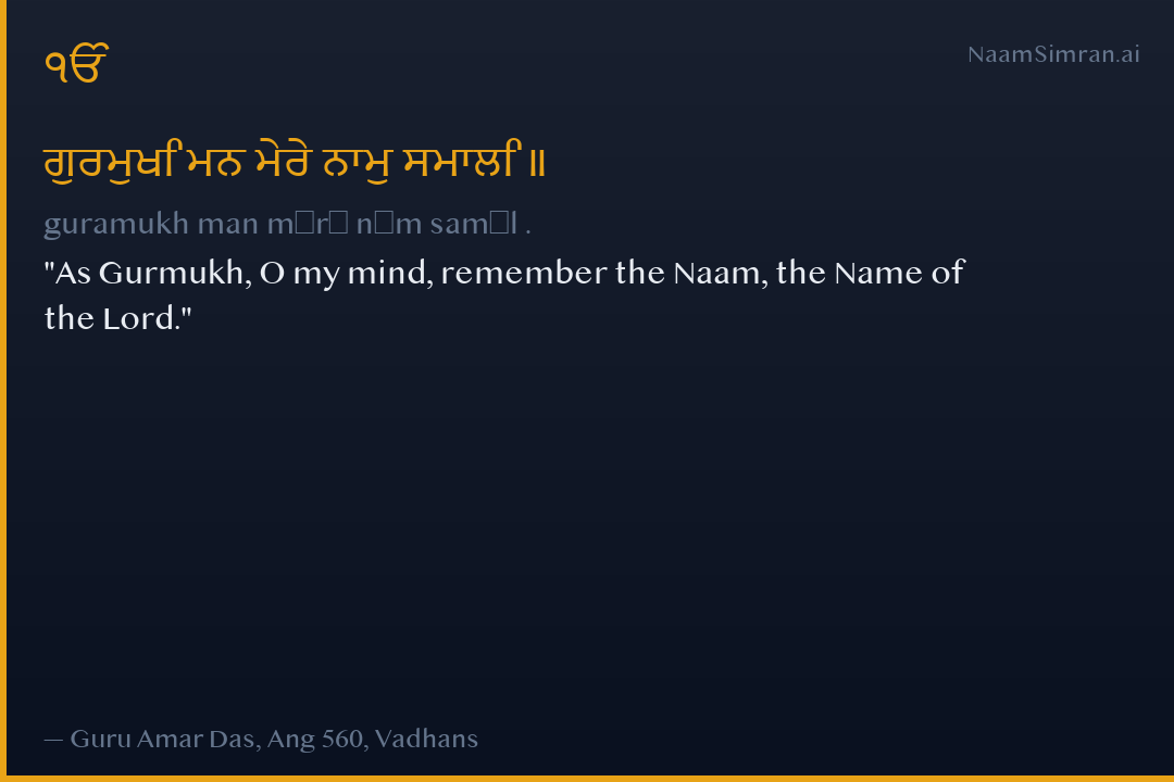 As Gurmukh, O my mind, remember the Naam, the Name of the Lord.