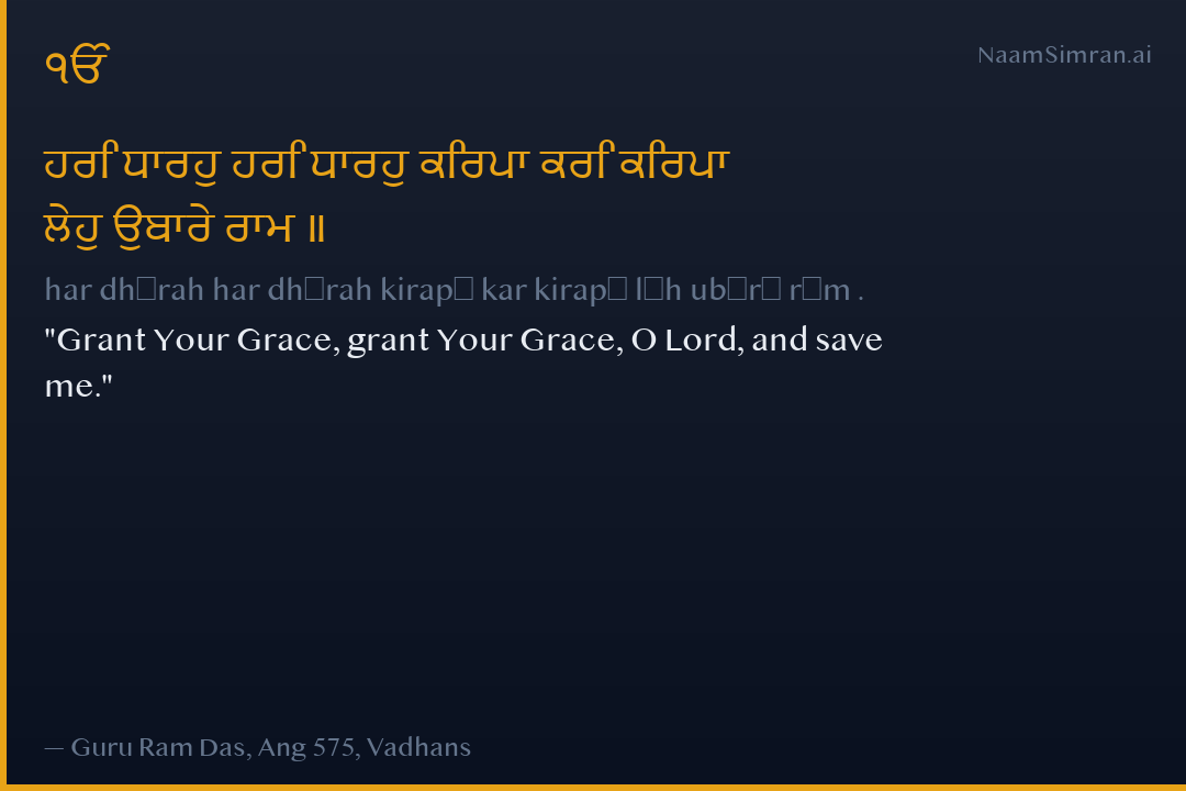ਹਰਿ ਧਾਰਹੁ ਹਰਿ ਧਾਰਹੁ ਕਿਰਪਾ ਕਰਿ ਕਿਰਪਾ ਲੇਹੁ ਉਬਾਰੇ ਰਾਮ ॥