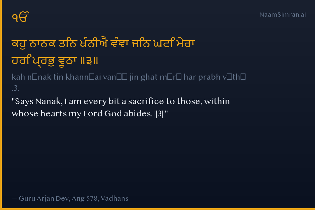Says Nanak, I am every bit a sacrifice to those, within whose hearts my Lord God abides. ||3||