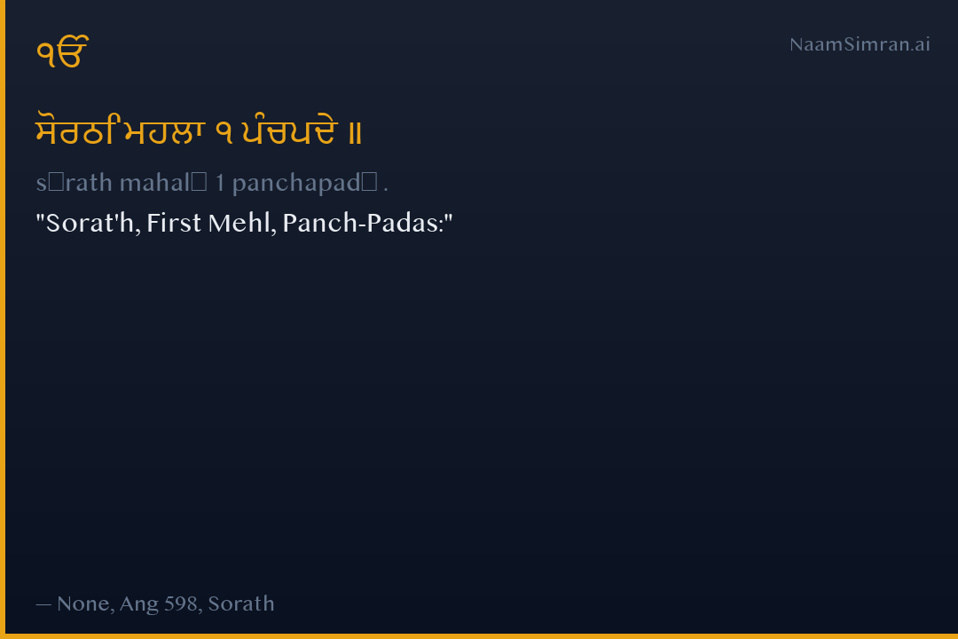 Sorat'h, First Mehl, Panch-Padas: