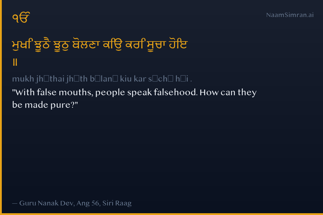 ਮੁਖਿ ਝੂਠੈ ਝੂਠੁ ਬੋਲਣਾ ਕਿਉ ਕਰਿ ਸੂਚਾ ਹੋਇ ॥