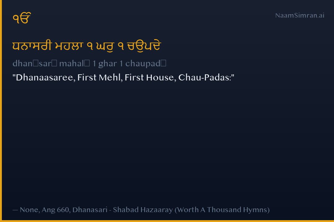 Dhanaasaree, First Mehl, First House, Chau-Padas: