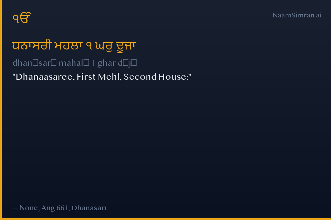 ਧਨਾਸਰੀ ਮਹਲਾ ੧ ਘਰੁ ਦੂਜਾ