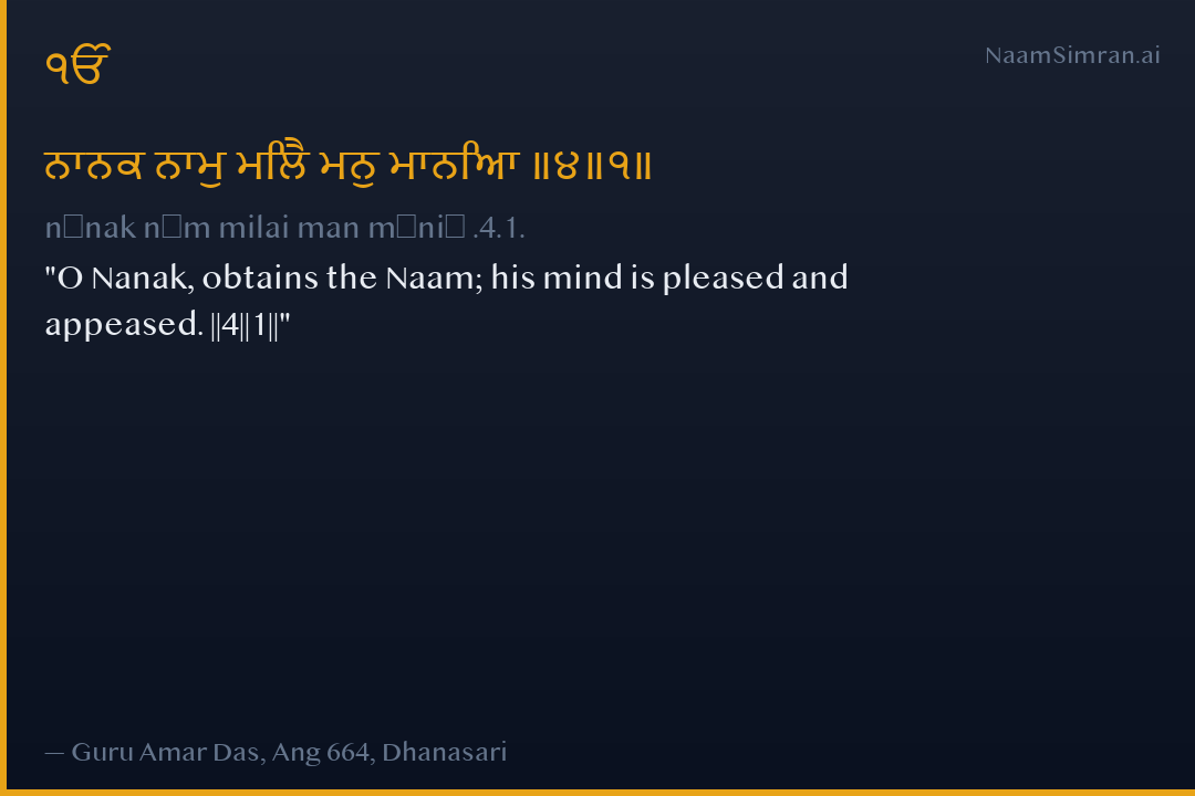 ਨਾਨਕ ਨਾਮੁ ਮਿਲੈ ਮਨੁ ਮਾਨਿਆ ॥੪॥੧॥