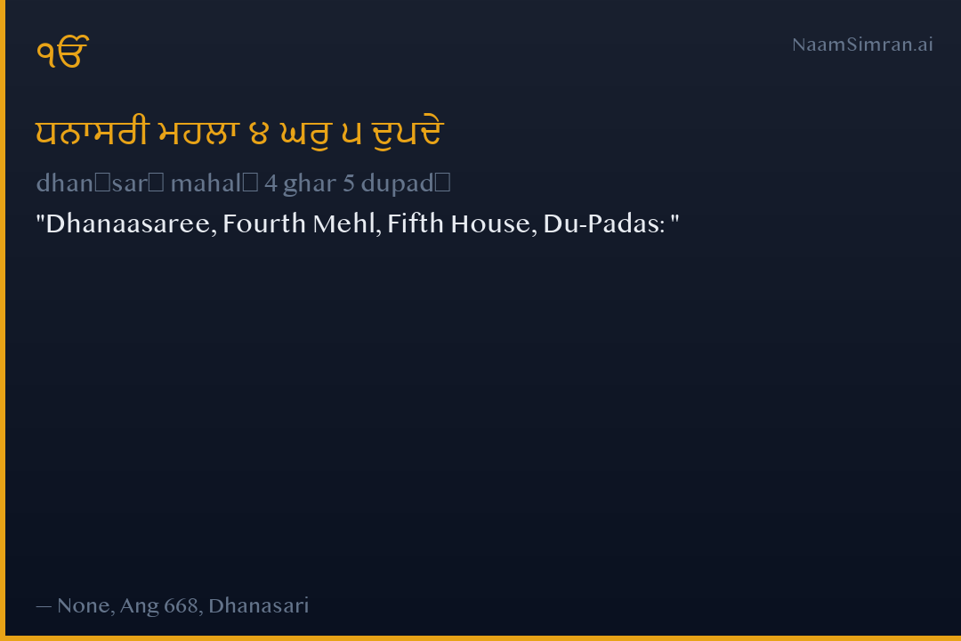 Dhanaasaree, Fourth Mehl, Fifth House, Du-Padas: