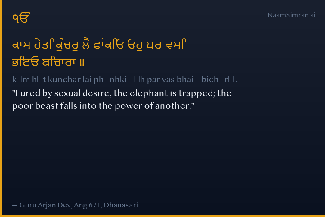 ਕਾਮ ਹੇਤਿ ਕੁੰਚਰੁ ਲੈ ਫਾਂਕਿਓ ਓਹੁ ਪਰ ਵਸਿ ਭਇਓ ਬਿਚਾਰਾ ॥
