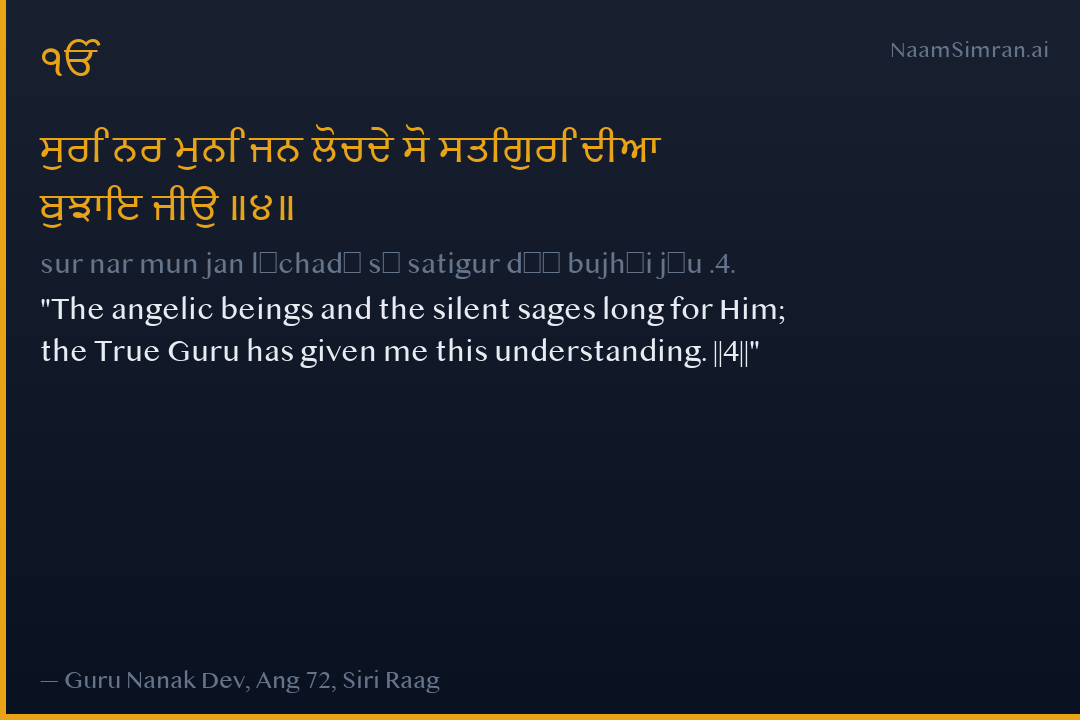ਸੁਰਿ ਨਰ ਮੁਨਿ ਜਨ ਲੋਚਦੇ ਸੋ ਸਤਿਗੁਰਿ ਦੀਆ ਬੁਝਾਇ ਜੀਉ ॥੪॥