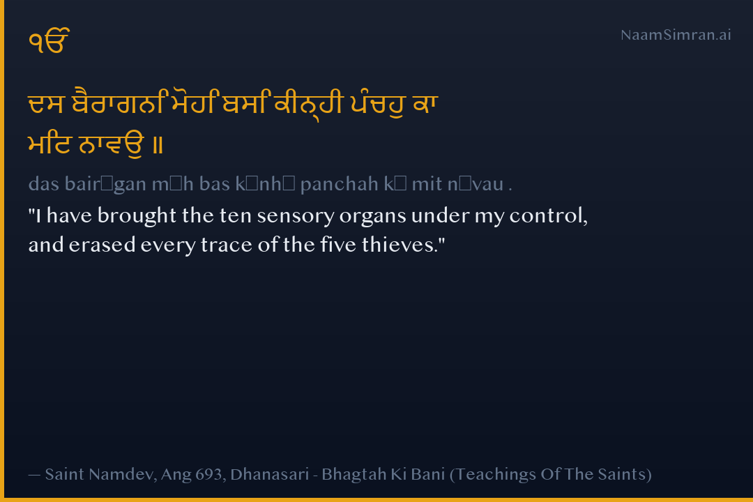ਦਸ ਬੈਰਾਗਨਿ ਮੋਹਿ ਬਸਿ ਕੀਨ੍ਹੀ ਪੰਚਹੁ ਕਾ ਮਿਟ ਨਾਵਉ ॥
