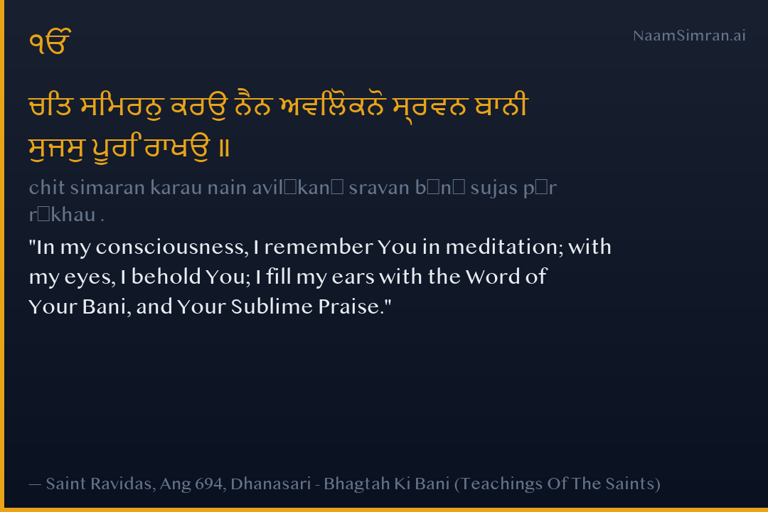 In my consciousness, I remember You in meditation; with my eyes, I behold You; I fill my ears with the Word of Your Bani, and Your Sublime Praise.