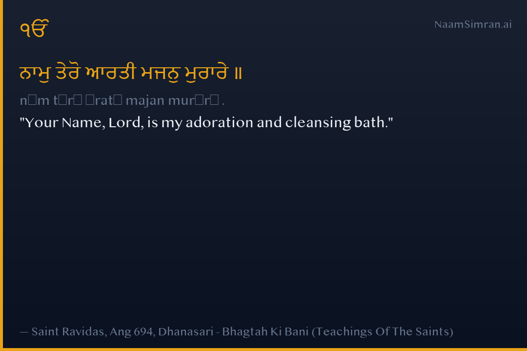 ਨਾਮੁ ਤੇਰੋ ਆਰਤੀ ਮਜਨੁ ਮੁਰਾਰੇ ॥