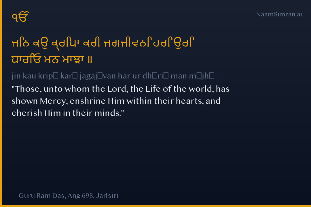 ਜਿਨ ਕਉ ਕ੍ਰਿਪਾ ਕਰੀ ਜਗਜੀਵਨਿ ਹਰਿ ਉਰਿ ਧਾਰਿਓ ਮਨ ਮਾਝਾ ॥