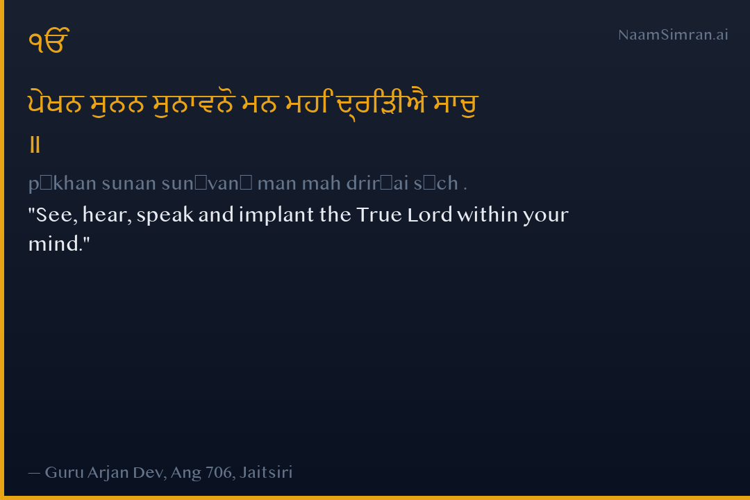 ਪੇਖਨ ਸੁਨਨ ਸੁਨਾਵਨੋ ਮਨ ਮਹਿ ਦ੍ਰਿੜੀਐ ਸਾਚੁ ॥