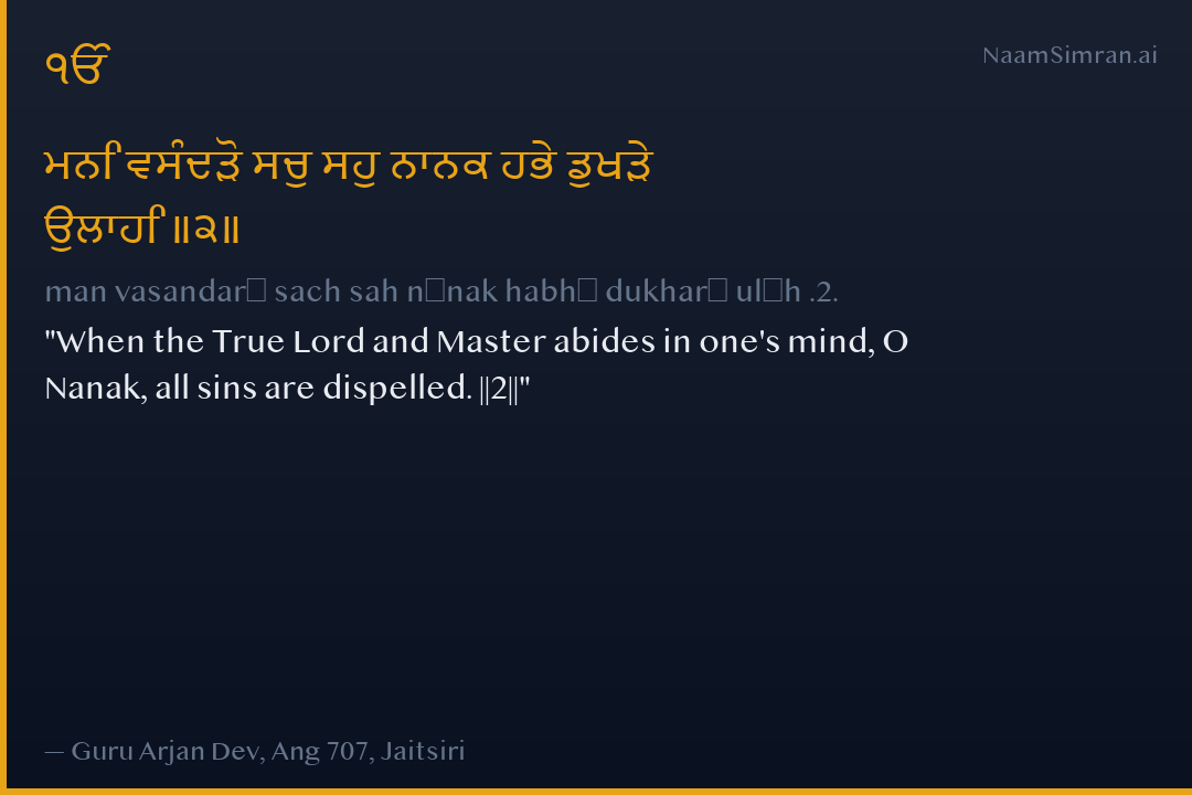 man vasandarō sach sah nānak habhē dukharē ulāh .2.
