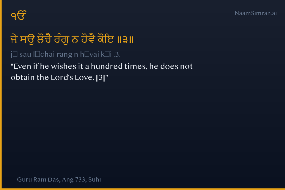 ਜੇ ਸਉ ਲੋਚੈ ਰੰਗੁ ਨ ਹੋਵੈ ਕੋਇ ॥੩॥