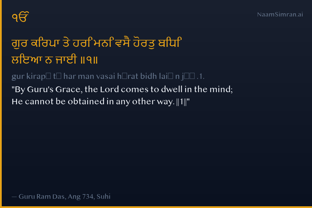 ਗੁਰ ਕਿਰਪਾ ਤੇ ਹਰਿ ਮਨਿ ਵਸੈ ਹੋਰਤੁ ਬਿਧਿ ਲਇਆ ਨ ਜਾਈ ॥੧॥