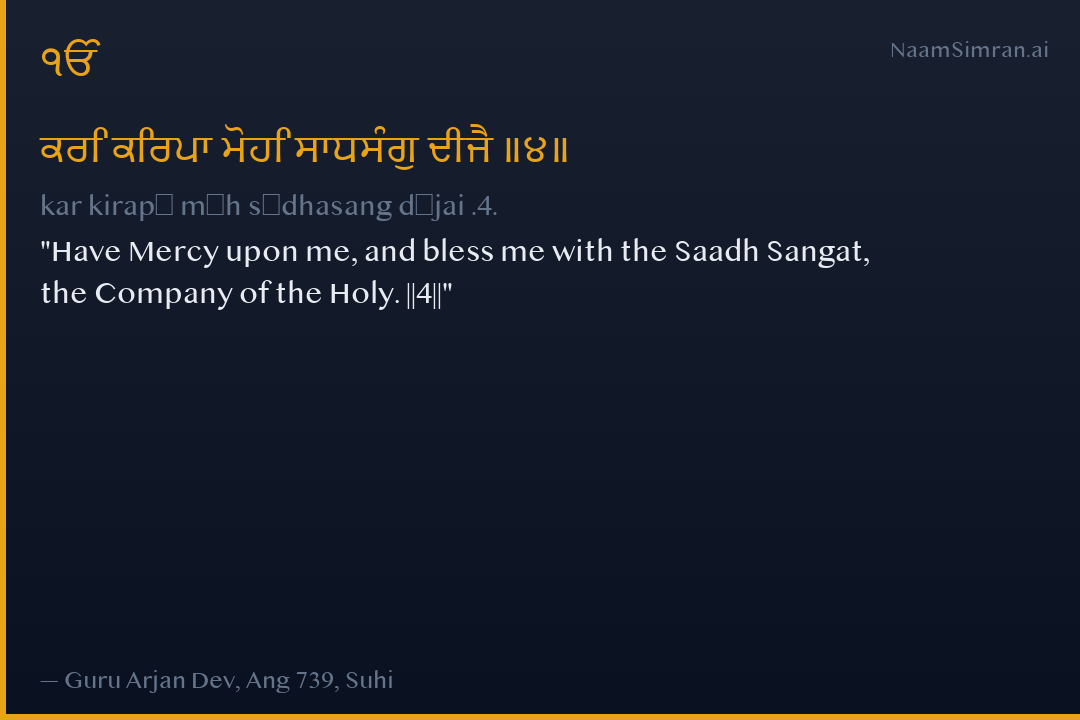 Have Mercy upon me, and bless me with the Saadh Sangat, the Company of the Holy. ||4||