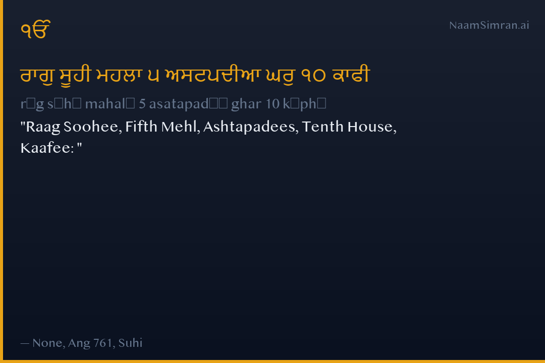 Raag Soohee, Fifth Mehl, Ashtapadees, Tenth House, Kaafee:
