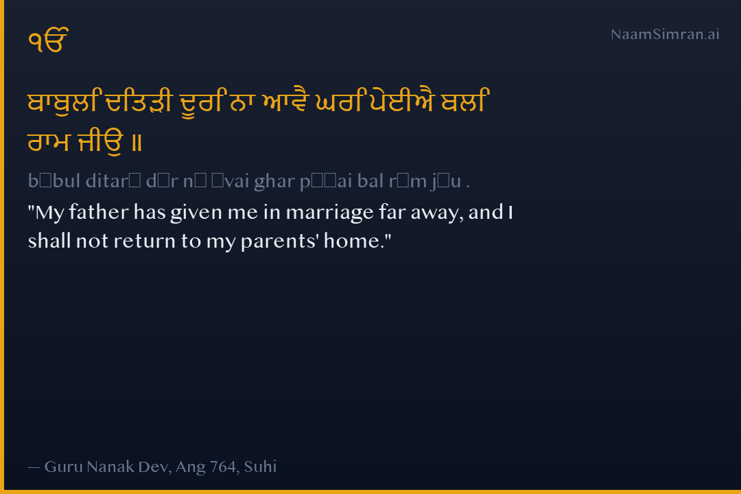 bābul ditarī dūr nā āvai ghar pēīai bal rām jīu .