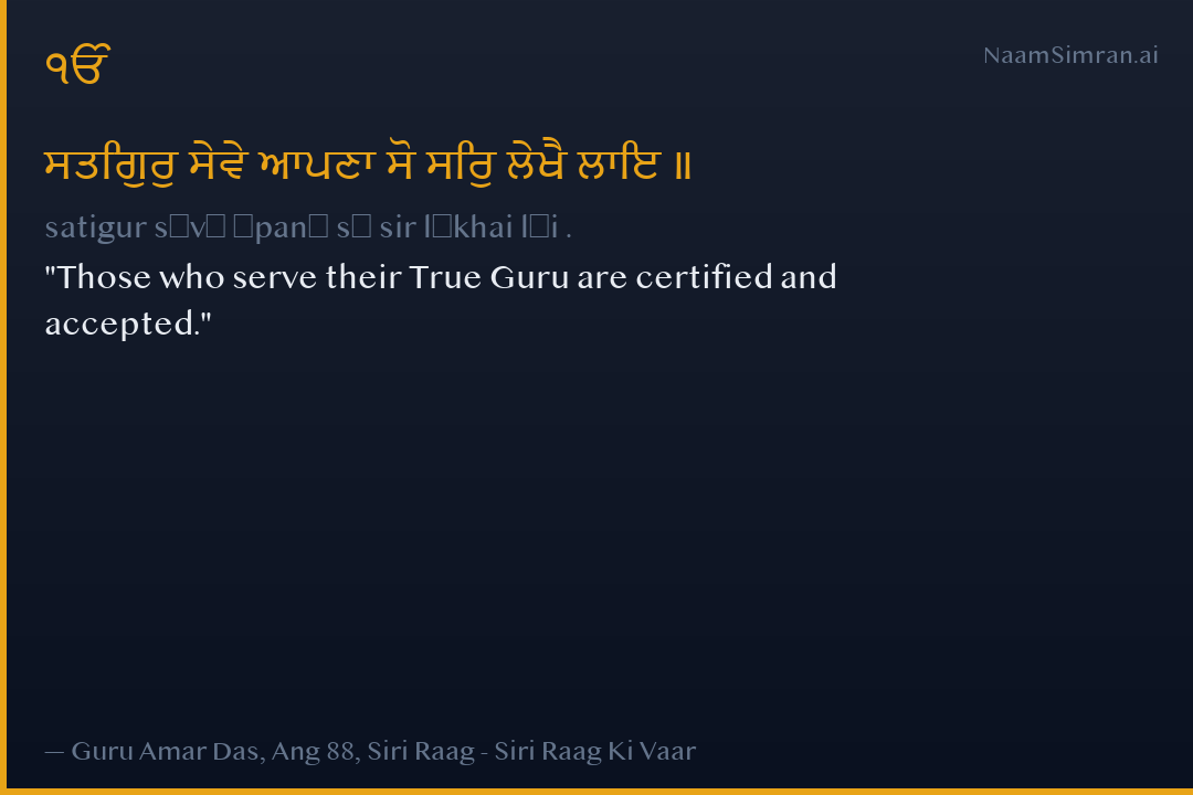 ਸਤਿਗੁਰੁ ਸੇਵੇ ਆਪਣਾ ਸੋ ਸਿਰੁ ਲੇਖੈ ਲਾਇ ॥