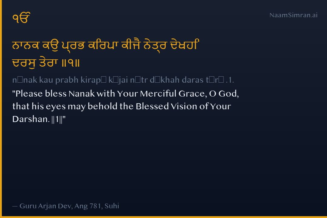 Please bless Nanak with Your Merciful Grace, O God, that his eyes may behold the Blessed Vision of Your Darshan. ||1||