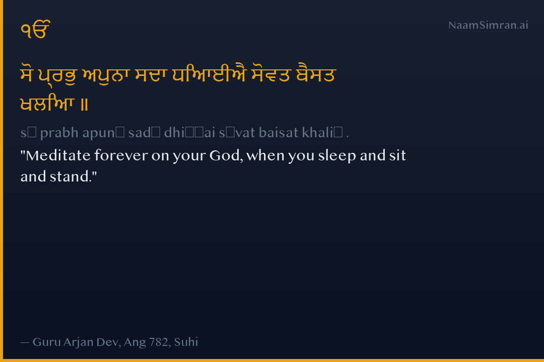 sō prabh apunā sadā dhiāīai sōvat baisat khaliā .
