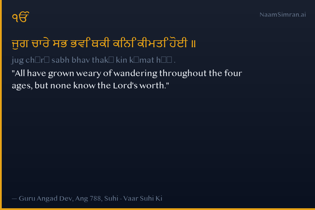 ਜੁਗ ਚਾਰੇ ਸਭ ਭਵਿ ਥਕੀ ਕਿਨਿ ਕੀਮਤਿ ਹੋਈ ॥