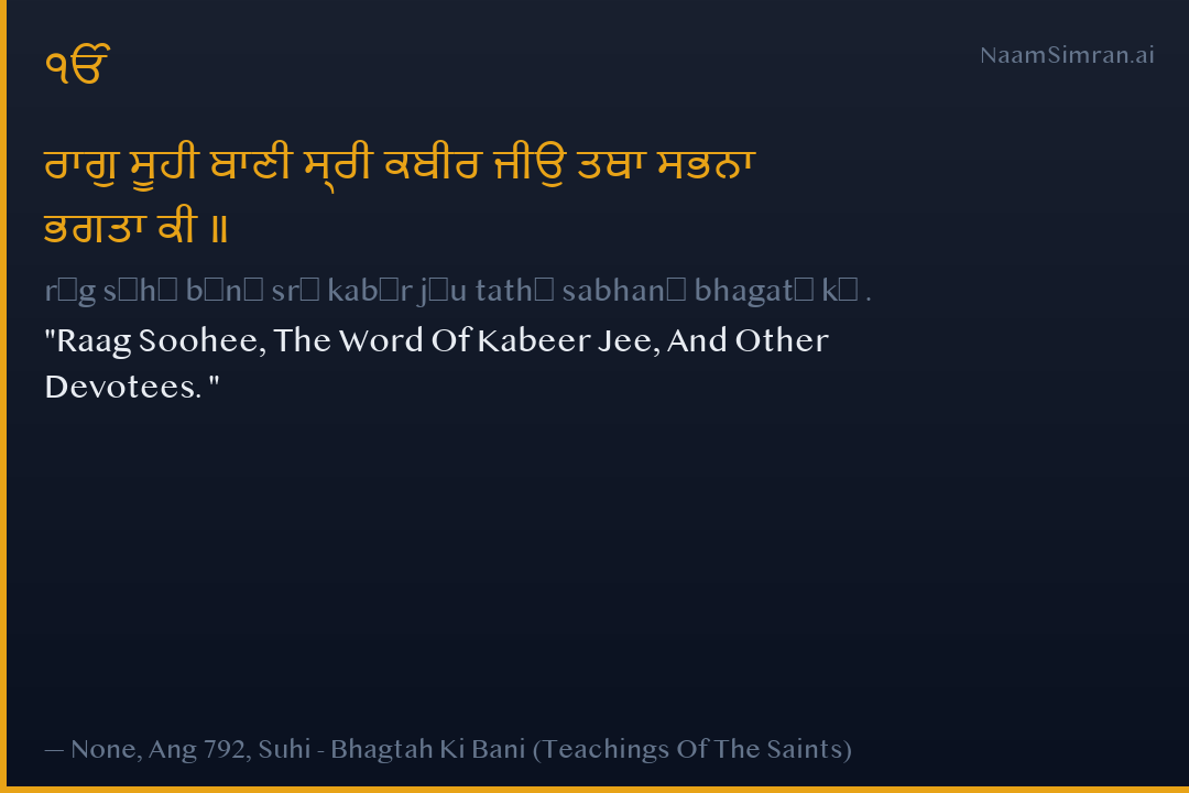 rāg sūhī bānī srī kabīr jīu tathā sabhanā bhagatā kī .