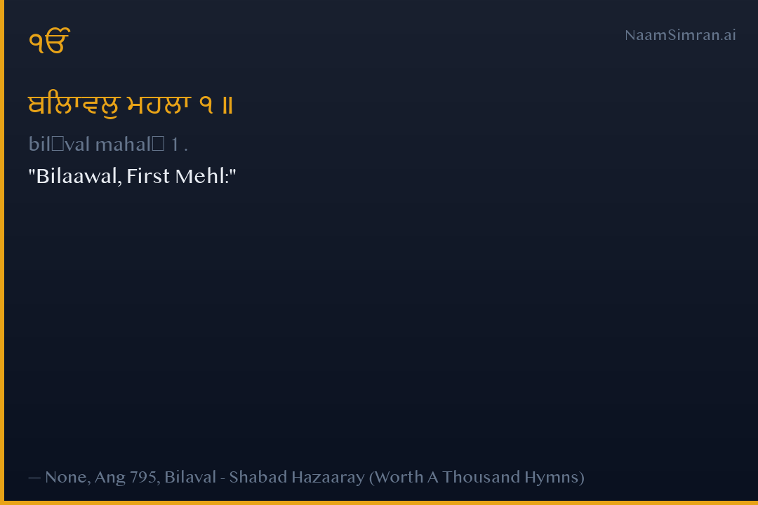 ਬਿਲਾਵਲੁ ਮਹਲਾ ੧ ॥