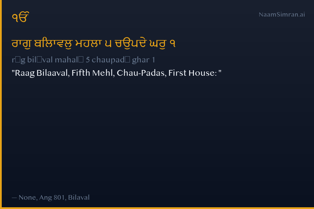 rāg bilāval mahalā 5 chaupadē ghar 1
