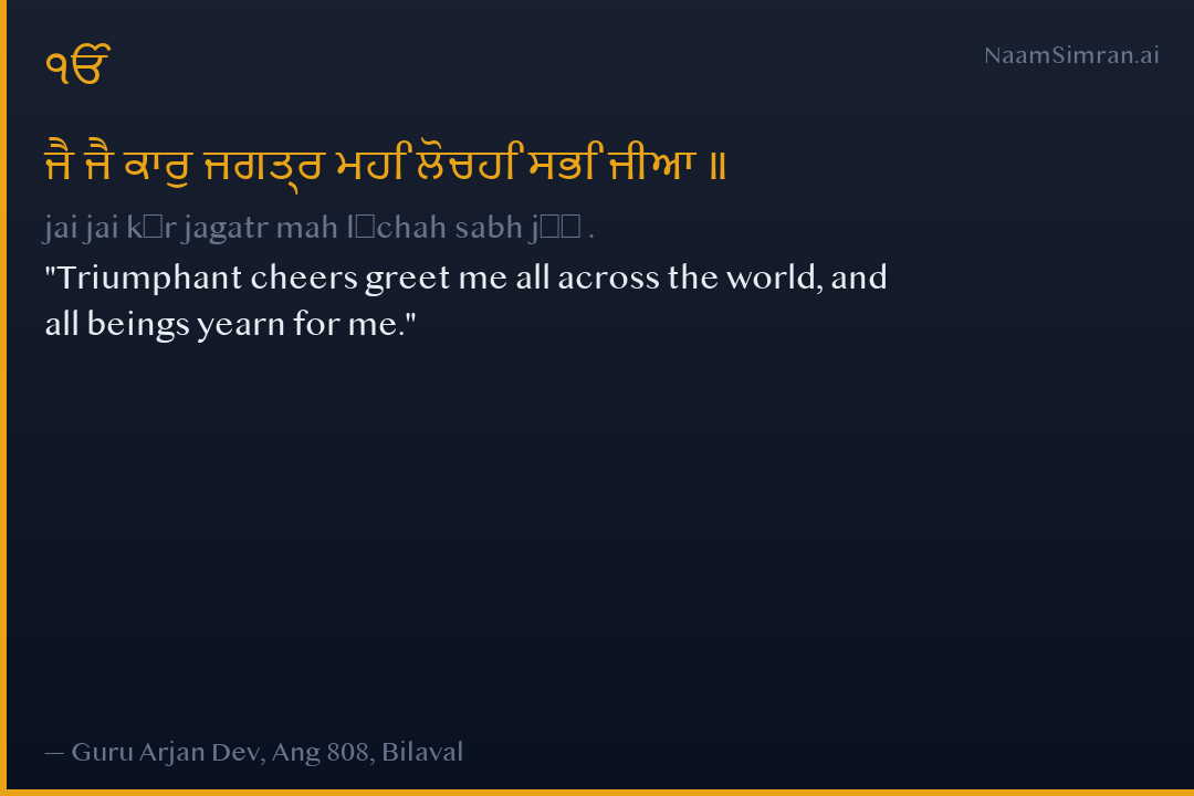 ਜੈ ਜੈ ਕਾਰੁ ਜਗਤ੍ਰ ਮਹਿ ਲੋਚਹਿ ਸਭਿ ਜੀਆ ॥