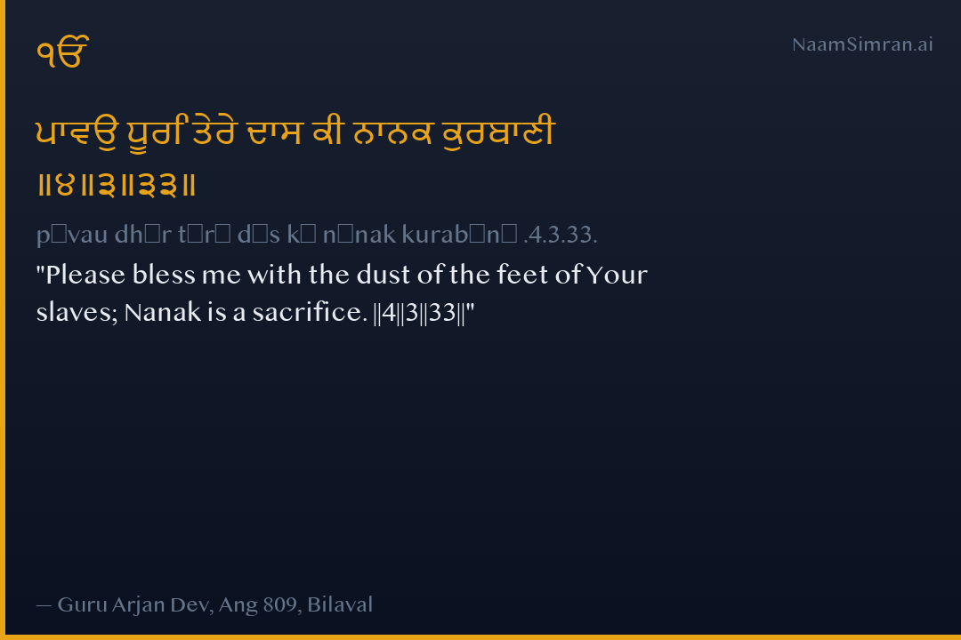 pāvau dhūr tērē dās kī nānak kurabānī .4.3.33.