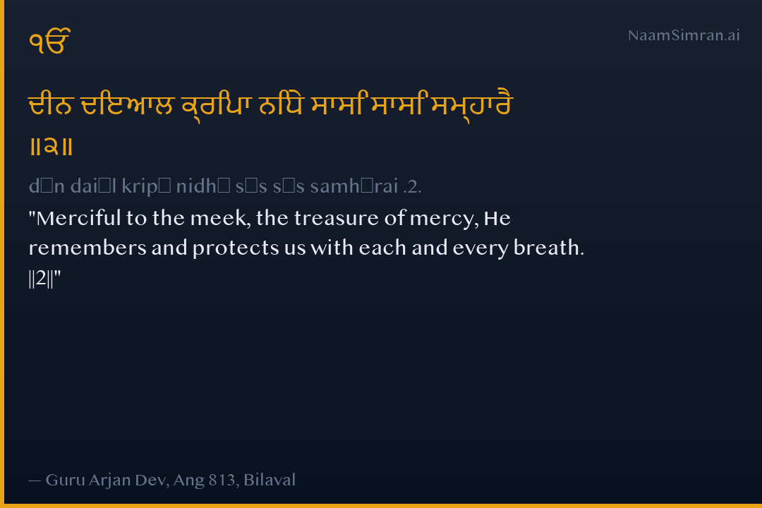 Merciful to the meek, the treasure of mercy, He remembers and protects us with each and every breath. ||2||