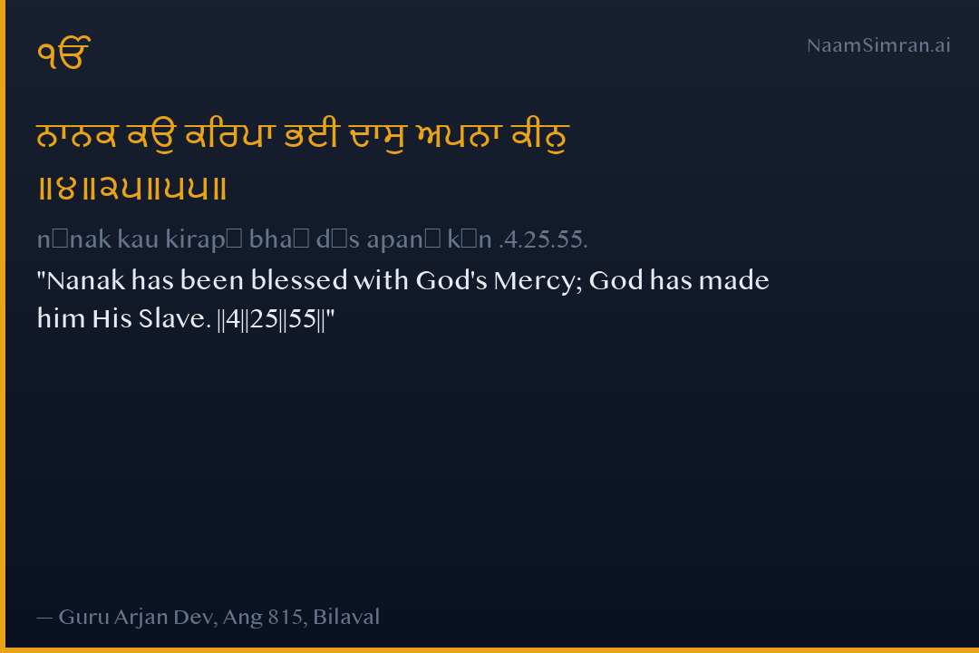 nānak kau kirapā bhaī dās apanā kīn .4.25.55.