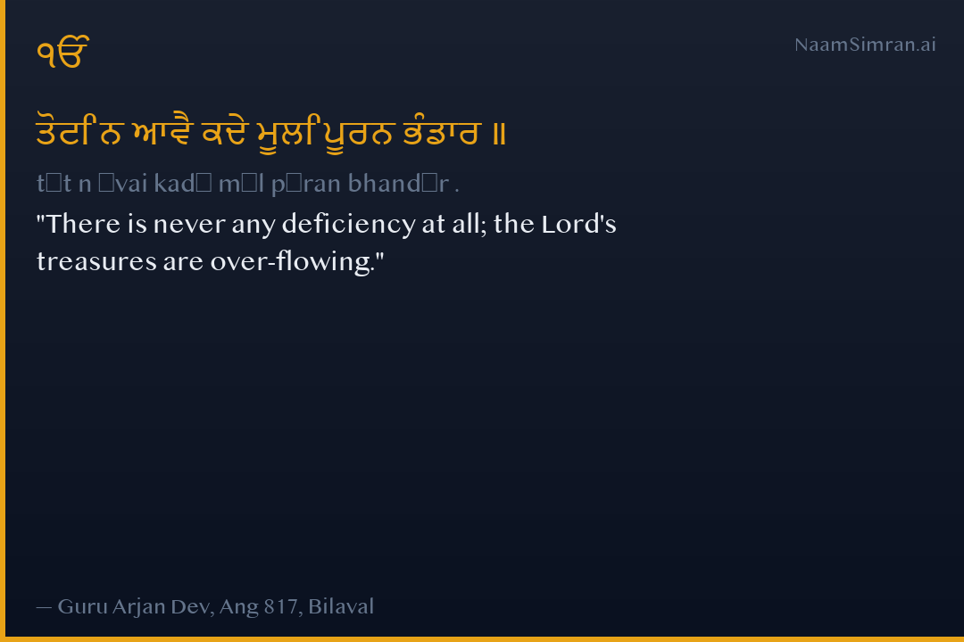 ਤੋਟਿ ਨ ਆਵੈ ਕਦੇ ਮੂਲਿ ਪੂਰਨ ਭੰਡਾਰ ॥