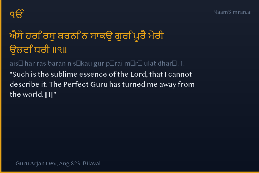 ਐਸੋ ਹਰਿ ਰਸੁ ਬਰਨਿ ਨ ਸਾਕਉ ਗੁਰਿ ਪੂਰੈ ਮੇਰੀ ਉਲਟਿ ਧਰੀ ॥੧॥
