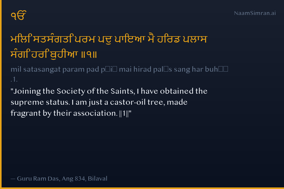 mil satasangat param pad pāiā mai hirad palās sang har buhīā .1.