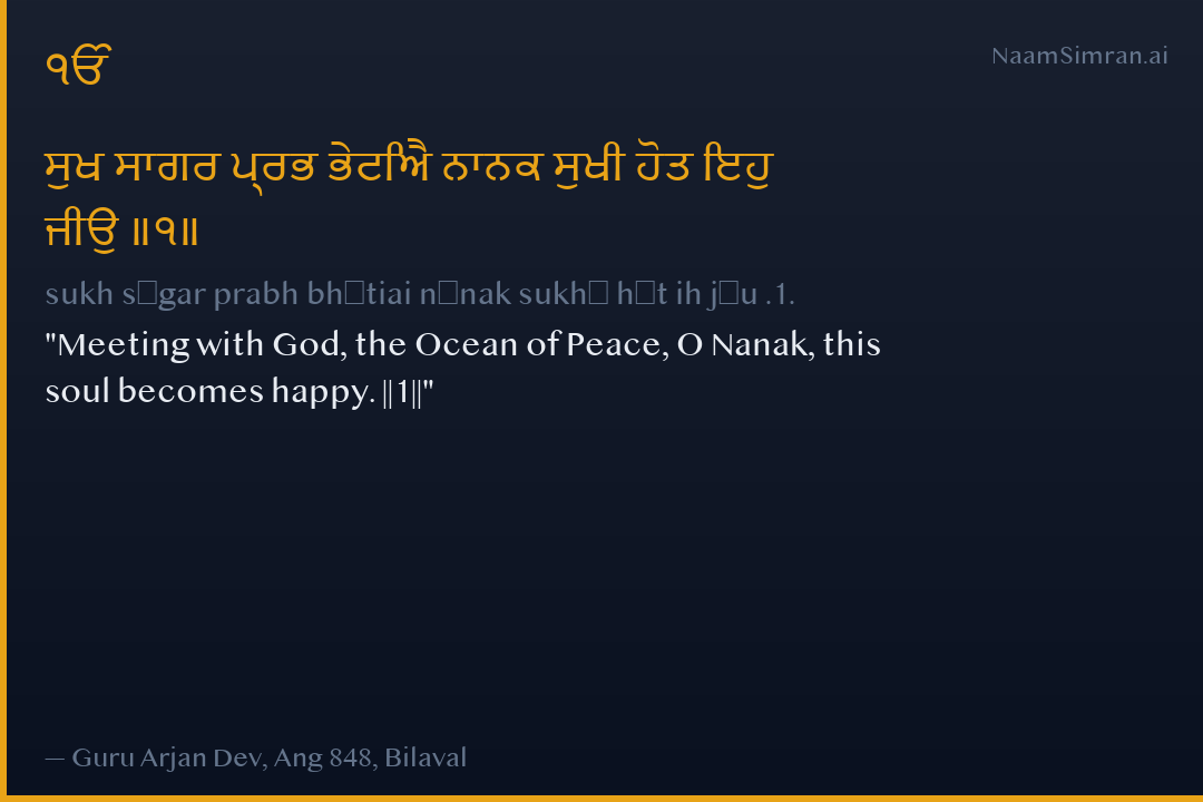 sukh sāgar prabh bhētiai nānak sukhī hōt ih jīu .1.