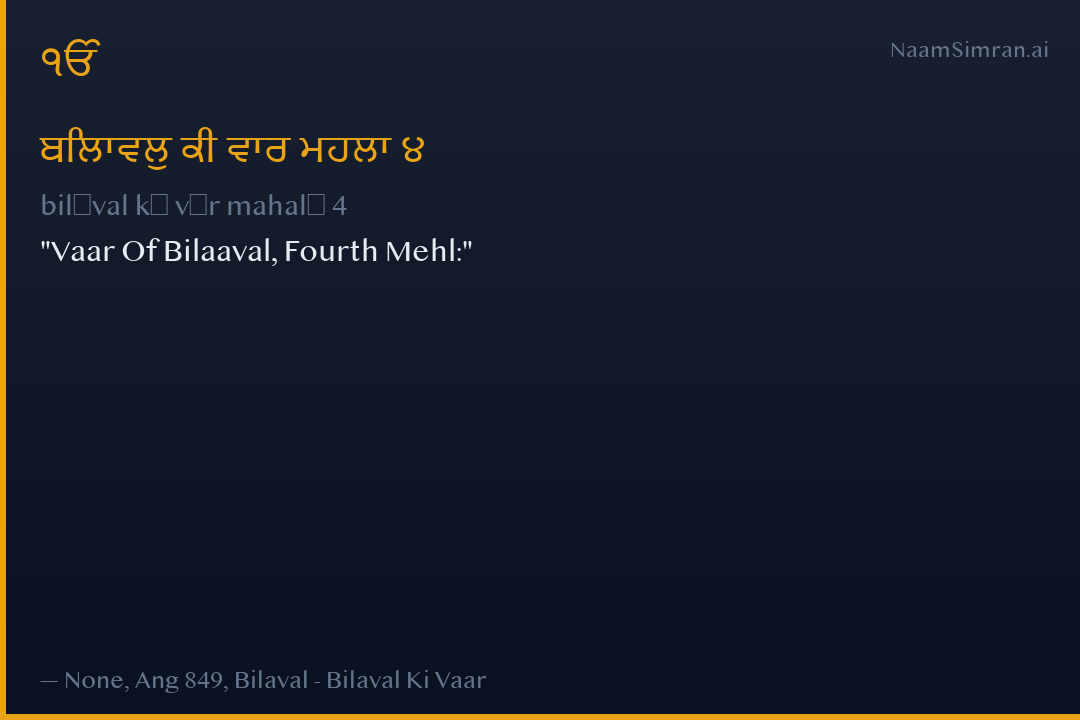 ਬਿਲਾਵਲੁ ਕੀ ਵਾਰ ਮਹਲਾ ੪